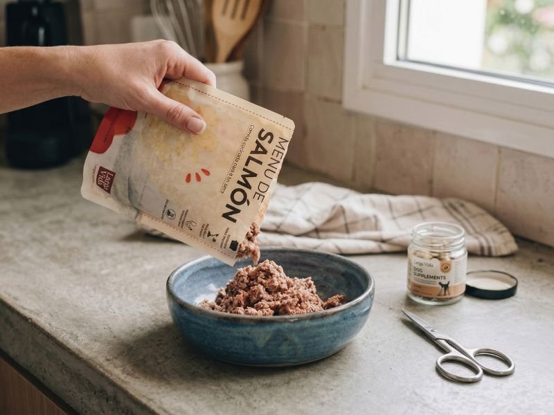 Durante aproximadamente año y medio, por ejemplo, preparamos comida natural todos los días en casa. Cocinábamos con la mejor intención: verduras, carne, salmón y otros ingredientes que, sobre el papel, parecían una muy buena opción. Habíamos leído mucho, comparado información y tratado de hacerlo con cuidado. Sin embargo, con el tiempo entendimos algo importante: una cosa es querer ofrecer comida natural, y otra muy distinta es conseguir que sea equilibrada, precisa y sostenible a largo plazo. Y ahí está una diferencia enorme.