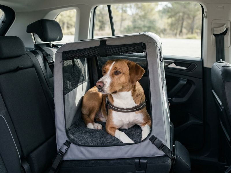 Para coche, la DGT recomienda elegir el sistema de retención según el tamaño del animal y recuerda que el perro no debe viajar suelto. Para perros pequeños, el transportín puede ir mejor en el suelo; para perros grandes, en el maletero en posición transversal y, preferiblemente, combinado con rejilla divisoria. En cambio, para avión importan mucho más la ventilación, el fondo impermeable, el tipo de cierre y la compatibilidad con la aerolínea. (DGT)